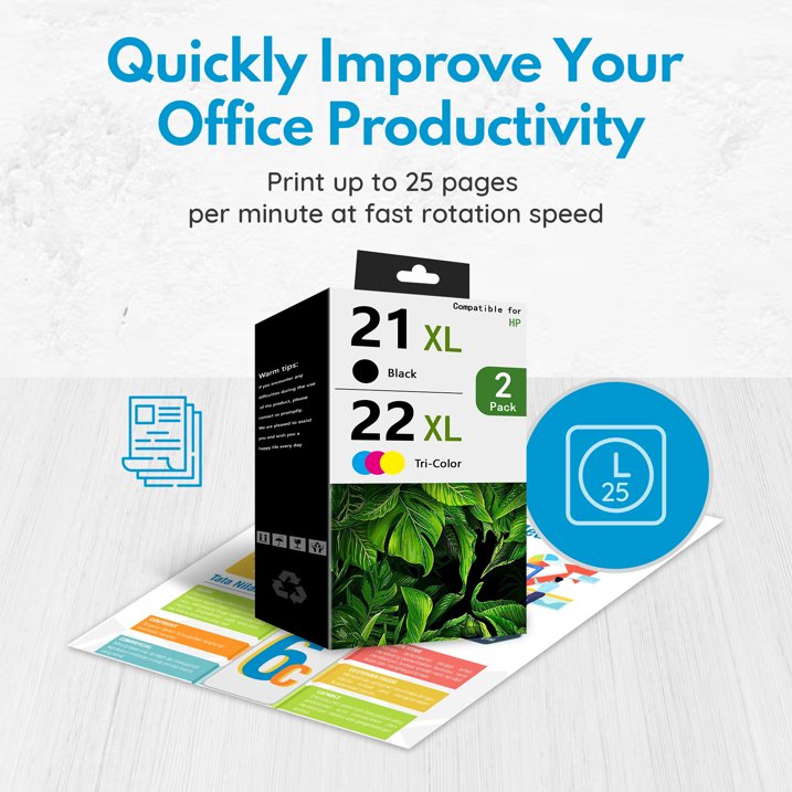 - Package Contents:1-Pack 21XL Ink Cartridge (Black)and 1-Pack 22XL Ink Cartridge(Tri-Color)