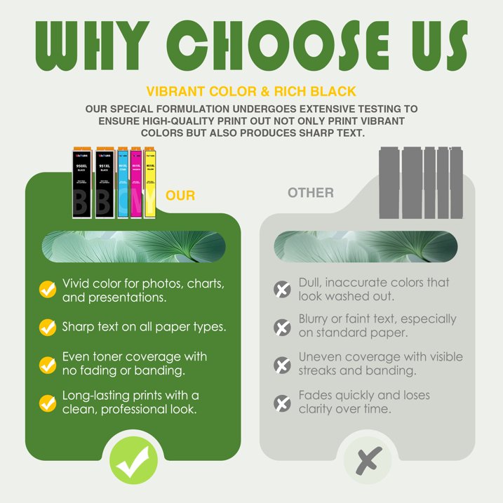 - Package Contents:2-Pack 950xl ink cartridge (2-Black) and 3-Pack 950xl ink cartridge (1-Cyan, 1-Magenta, 1-Yellow)