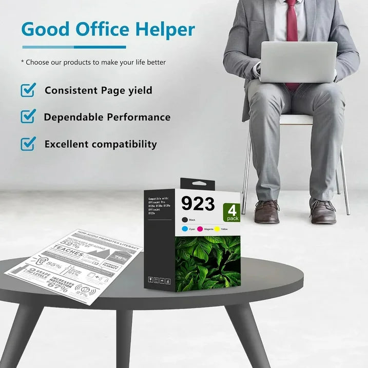 - 923 cartridge combination is compatible with specific models of printers to ensure a perfect match with your printer. Suitable for high-print scenes, such as offices, schools, studios, etc.High quality print results, capable of presenting clear, colorful images and text. Large capacity design, reduce the frequency of changing ink cartridges, improve work efficiency.