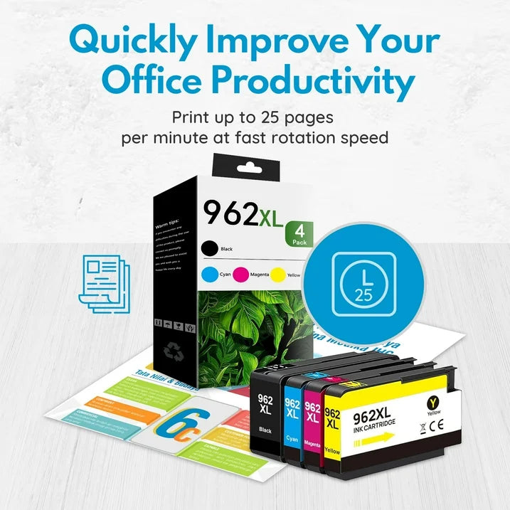 • Package Contents: 4-Pack 962XL Ink Cartridge (1-Black, 1-Cyan, 1-Magenta, 1-Yellow)