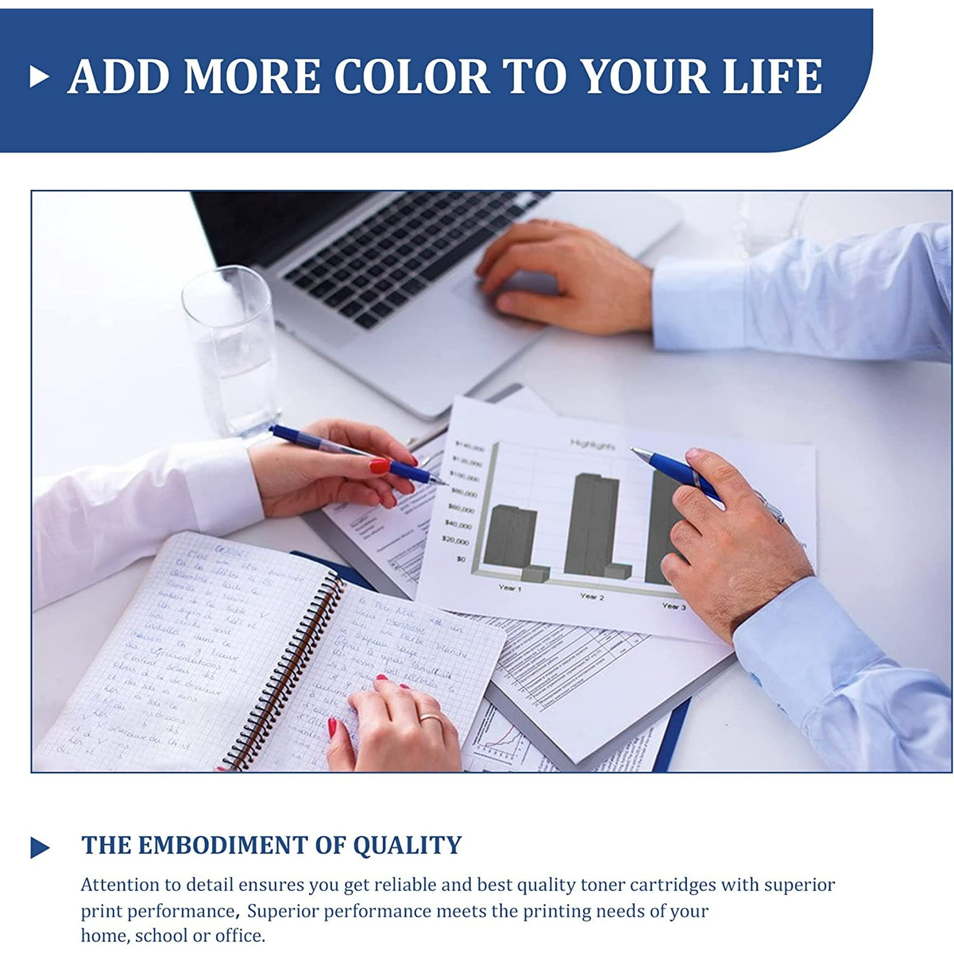 Product prints fast Premium ink delivers crisp, clear text and graphics, Bright colors print vivid colors and crisp images, creating more realistic visuals for you and your eyes.